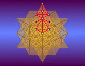 In aceste figuri exista un nivel suplimentar de diviziune fractala la mijloc. Privite de aproape, aceste informatii raspund exact la acelasi principiu al diviziunii – triunghi sau tetraedru. Iar daca se acopera partea octaedrica a retelei de 64 de tetraedre se obtine o potrivire perfecta a acestora cu matricea vectoriala.